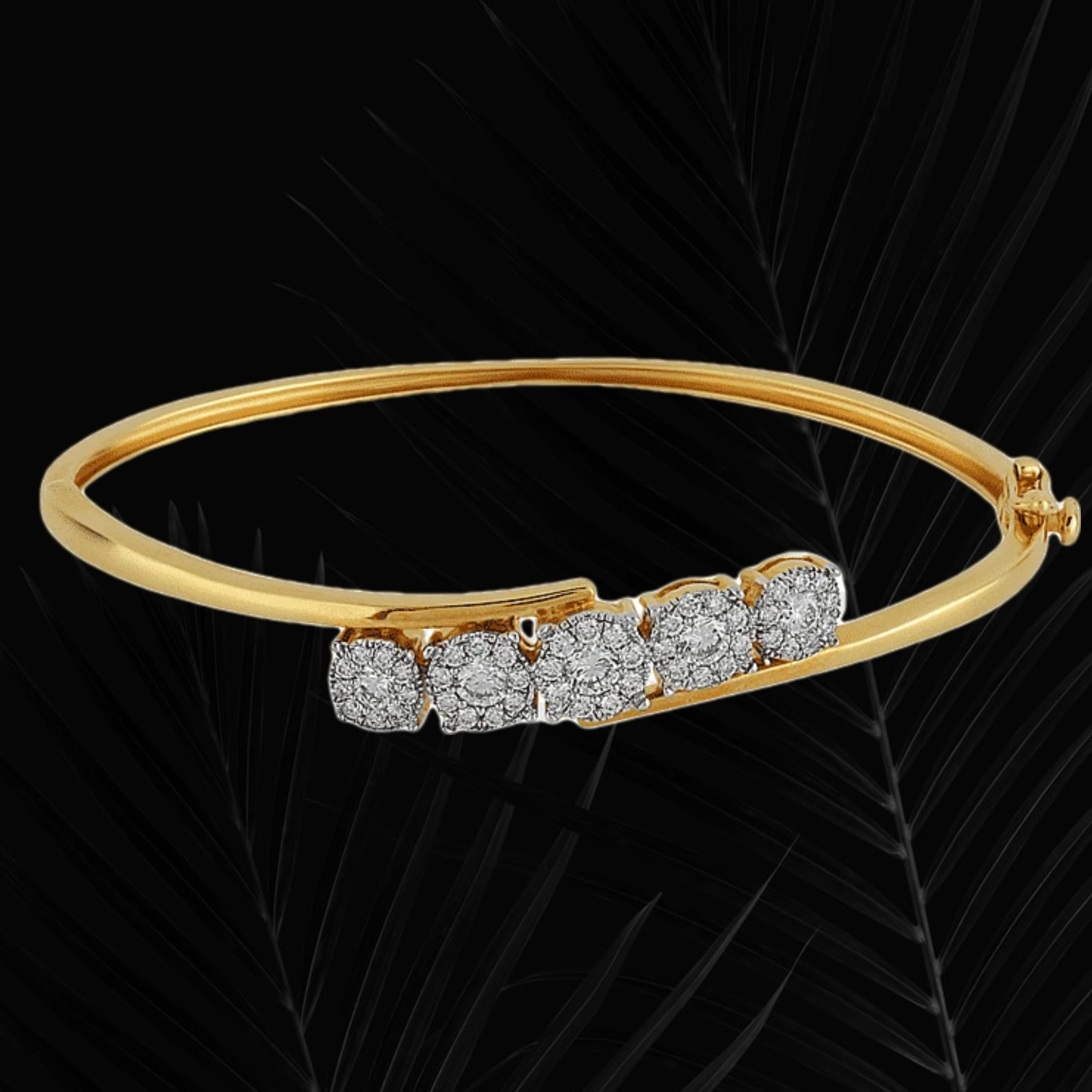 A yellow gold bracelet with five studded stones.